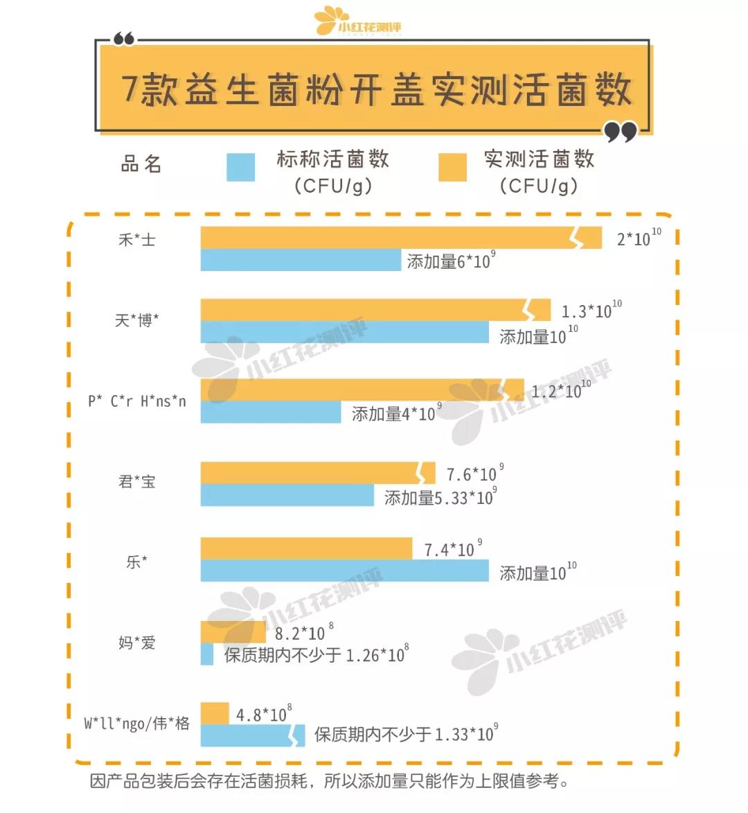 2.禾*士、天*博*和P* C*r H*ns*n實(shí)測(cè)活菌數(shù)能達(dá)到百億級(jí)別,是媽*愛(ài)和偉*格的25倍以上,表現(xiàn)。