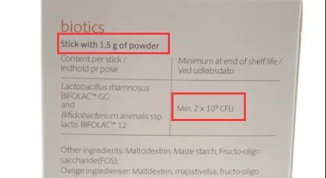 ▲偉*格標(biāo)稱(chēng)低活菌數(shù)為2×109CFU/1.5g,即1.33×109CFU/g