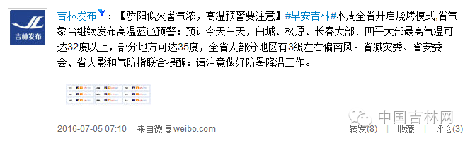 吉林省氣象臺繼續(xù)發(fā)布高溫藍色預(yù)警:局地達35℃