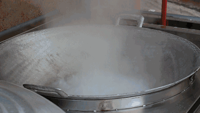 后是將米和水調(diào)至適當(dāng)比例用石磨磨成漿,做到稠而不稀,石磨一直沿用傳統(tǒng)的手推磨。