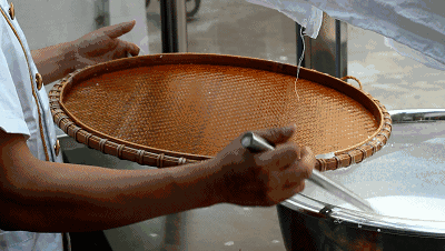 用來(lái)做竹箕粉的竹箕都是從廣西請(qǐng)專人編織的,一點(diǎn)兒也不會(huì)漏出來(lái)