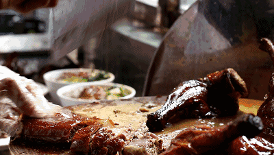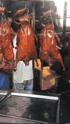 現(xiàn)場(chǎng)看著新鮮出爐燒鵝斬開(kāi)件,short short聲的燒鵝皮、隨著刀起刀落濺出來(lái)的汁,有料妹都忍不住咽了好幾次口水了...