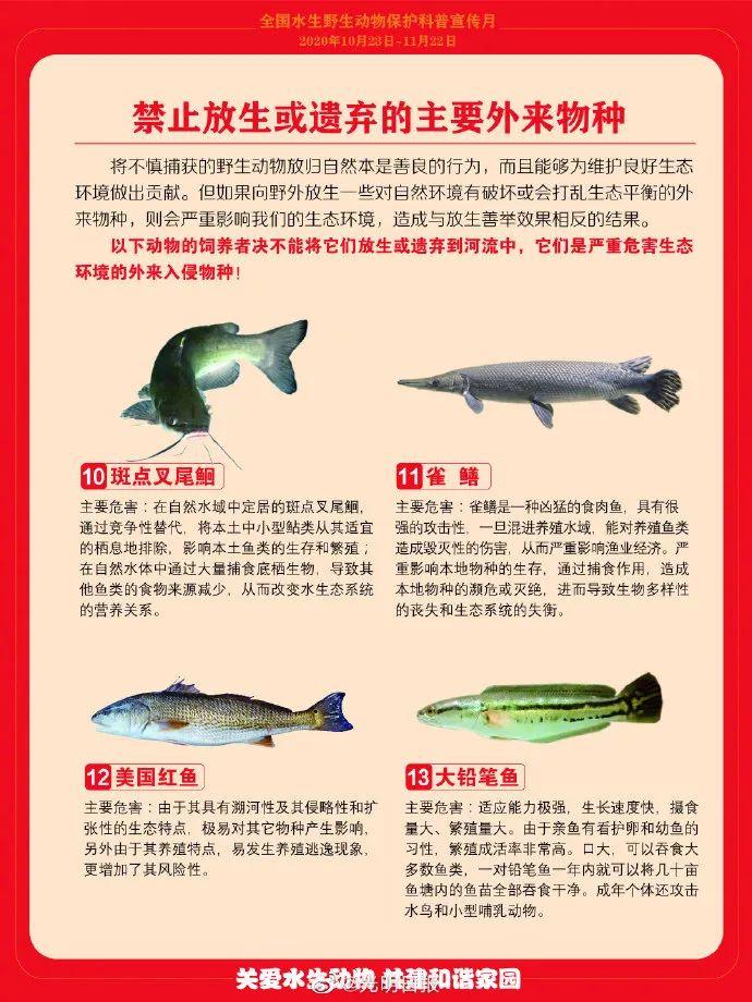今年七月上海蘇州河上頻現(xiàn)大量死魚成噸的魚蝦被人打著“祈福積德”的旗號放生到蘇州河里轉(zhuǎn)眼一命嗚呼嚴重影響了附近居民的生活這種盲目放生的行為頻上熱搜鱷龜、鱷雀鱔、食人鯧、福壽螺......外來物種被隨意放生對生態(tài)環(huán)境造成了極大的損害放生,本該是保護自然愛護生命的行為但盲目放生不僅危害環(huán)境還可能違法今年8月1日起農(nóng)業(yè)農(nóng)村部、自然資源部、生態(tài)環(huán)境部等聯(lián)合發(fā)布的《外來入侵物種管理辦法》正式開始實施這是我國第一部針對外來物種防控的管理辦法辦法明確任何單位和個人未經(jīng)批準不得擅自引進、釋放或者丟棄外來物種未經(jīng)批準擅自引進、釋放或者丟棄外來物種的將依照《中華人民共和國生物法》第81條進行處罰涉嫌犯罪的將依法移送司法追究刑事責任目前我國已發(fā)現(xiàn)660余種入侵生物中國水產(chǎn)科學研究院珠江水產(chǎn)研究所副研究員顧黨恩表示要從源頭抓起從引種到貿(mào)易,加強監(jiān)管另外,也要杜絕人為放生保護好生態(tài)環(huán)境另外,特別提醒不能吃!