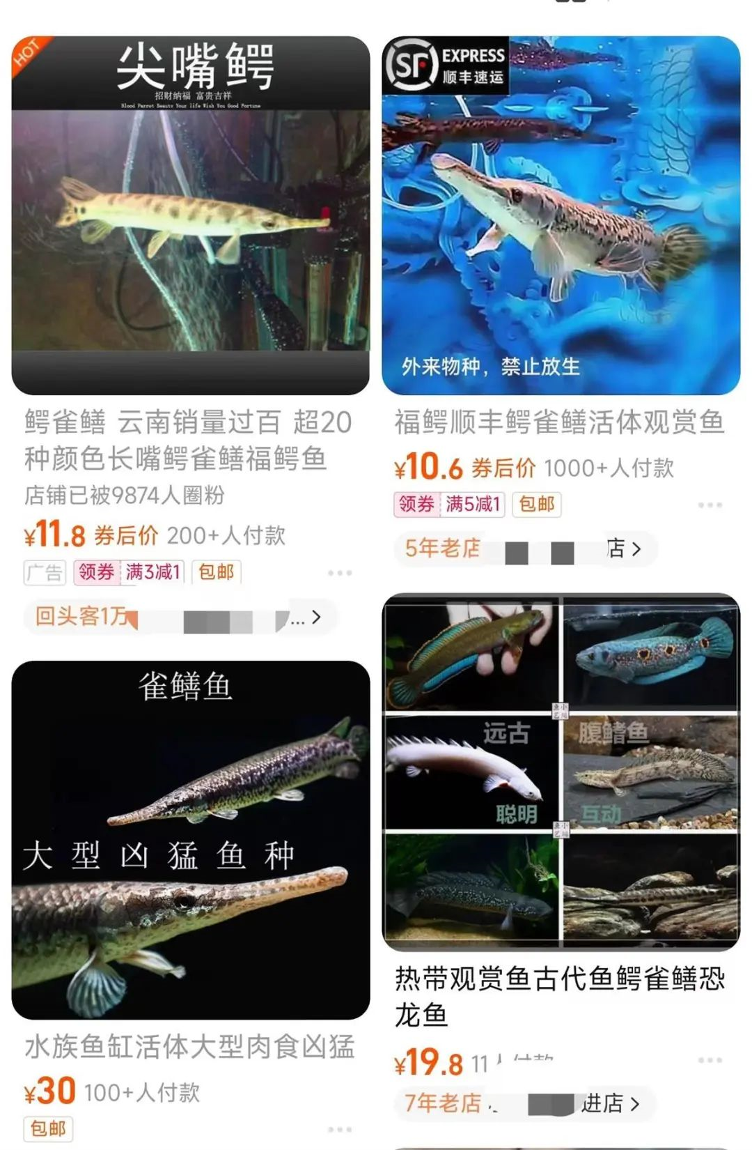 網(wǎng)店銷售鱷雀鱔(來源:網(wǎng)絡截圖)