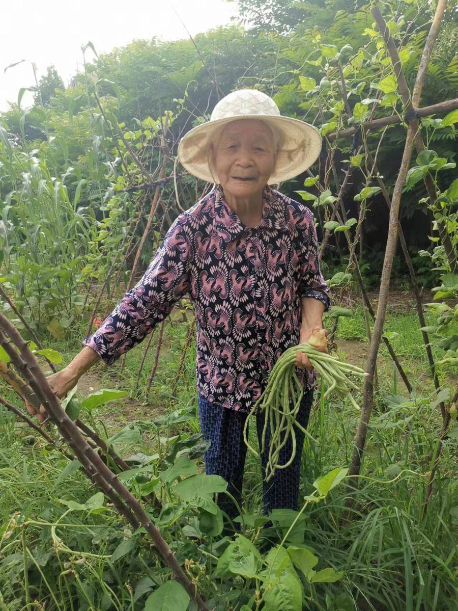 這才四十多天,院子里種的這些菜呀果啊就都長成這樣了,再不摘,再不管,有的就落了,有的就老了,有的就裂了,干了。在城里,天天腦子里就是這些茄子,豆角,桃子,葡萄,絲瓜,它們竄著個在眼前晃來晃去,晃來晃去。在城里女兒家里,樓上轉(zhuǎn)來轉(zhuǎn)去也看不見這些瓜果,能不想它們嘛!小區(qū)院里有花有草,有樹有鳥,是挺好的,再好也沒有在家里天天看著這些瓜果生長好。回家前幾天,真是飯也不想吃,覺也睡不好,總覺得身體有了啥毛病,閨女也和我去看了,也在家里給我做了艾灸,也沒有啥毛病??!回來一看到院子里這些瓜果,看到趴在絲瓜架下的那兩條狗,我這心里一點結(jié)也沒有了。城里好,沒有俺這老屋老院的老家好。一下車,我就看見它們都沖著我笑著,我這背的耳朵也能聽到它們和我說話的聲音,我那看不清東西的眼睛也能看到葡萄們水靈靈的樣子。這心里豁亮多了,哪有什么毛病啊,我和老伴身體都杠杠的,就是天天和這地打交道的命。
