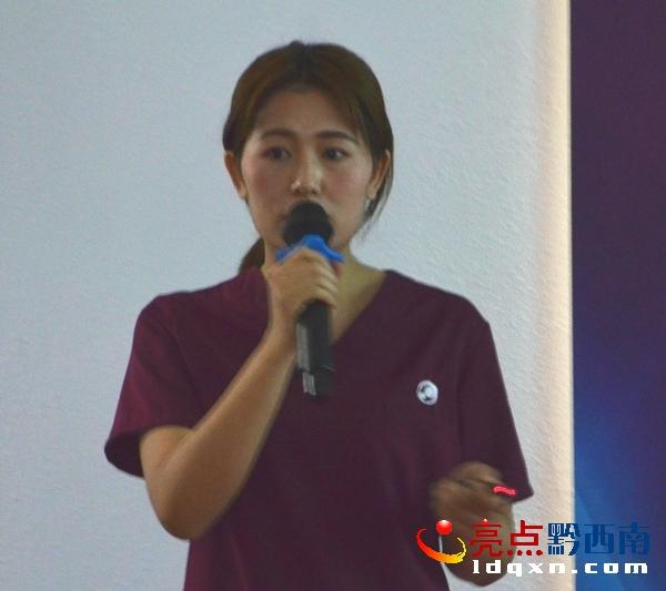 在講解中,助手陳美娟指出該患者牙齒創(chuàng)傷大、牙根炎癥大的兩大問題,并仔細(xì)講述了梁國(guó)民院長(zhǎng)是如何為患者拔除壞牙、對(duì)牙根進(jìn)行清除、種植以及修復(fù)牙齒。