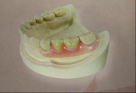 適合于前牙區(qū)過渡性義齒修復,無卡環(huán)設計美觀固位好,因對牙齦有壓迫刺激不宜長期使用。