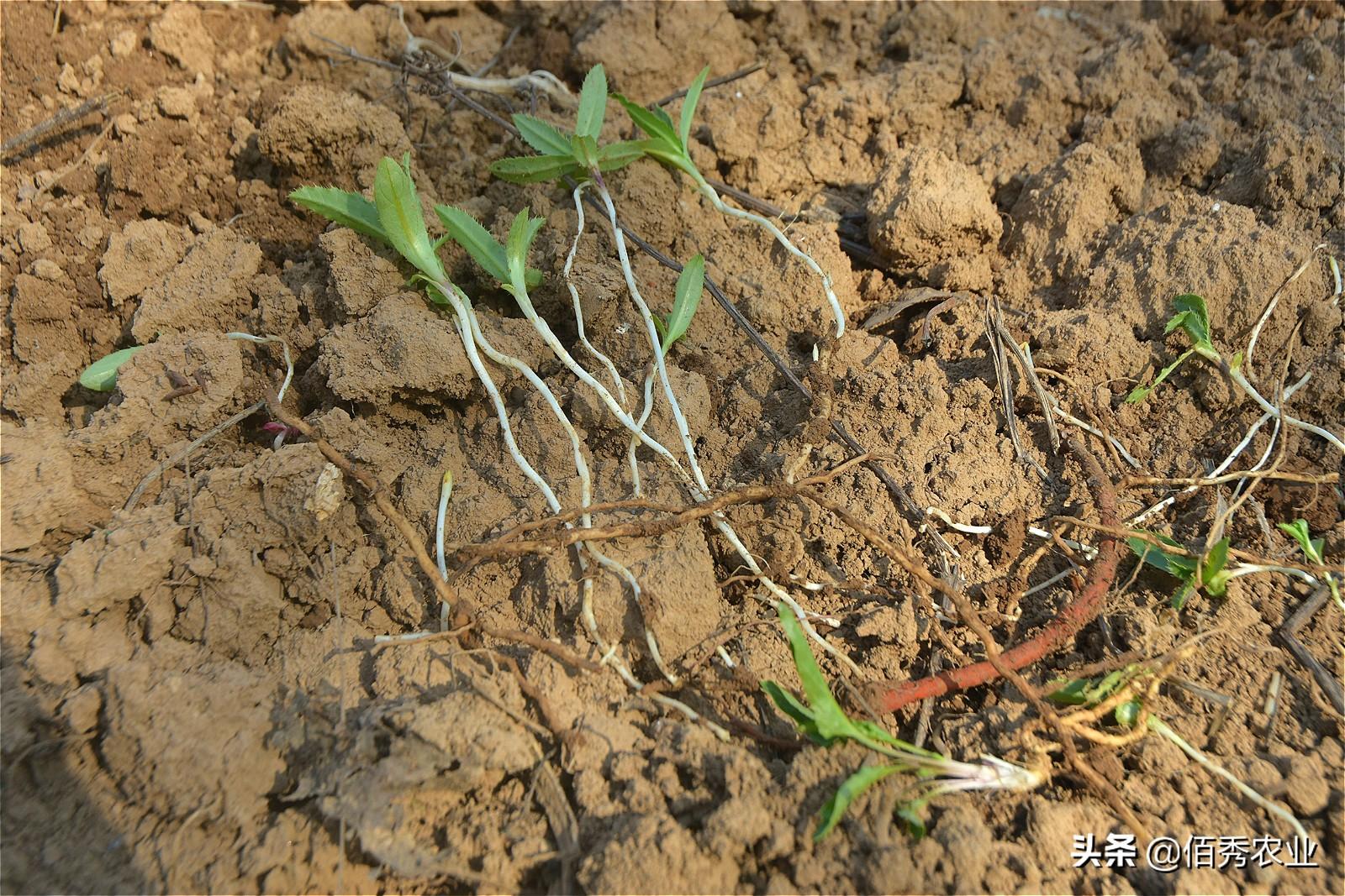 大叔姓李,他擦了擦臉上的汗水,放下手中的農(nóng)具和筆者打招呼,據(jù)他介紹,他們這是在為田地除草呢,腳下的這種雜草,危害特別嚴(yán)重,你看看,別看它的葉片就幾個,下面的根莖居然是植株的十幾倍,就是噴除草劑也沒有辦法,鏟除了上面的植株,卻除不了根。