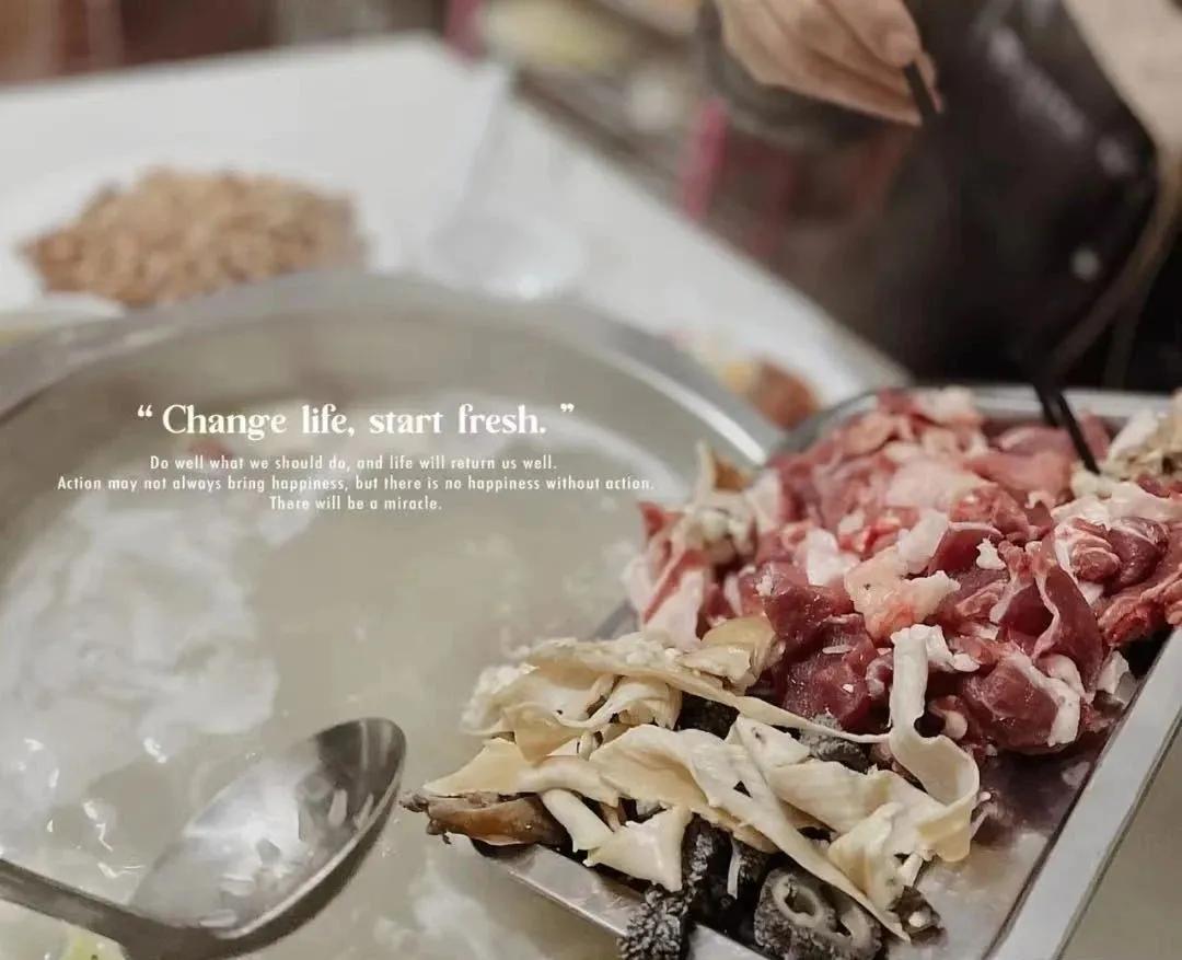 香噴噴的鮮羊肉沾上秘制麻辣醬 嚼在嘴里滿滿的都是羊肉鮮香,這種霸道的鮮香是凍切羊肉無法比擬的,不管是涮青菜還是涮毛肚,都能你的味蕾瞬間淪陷。