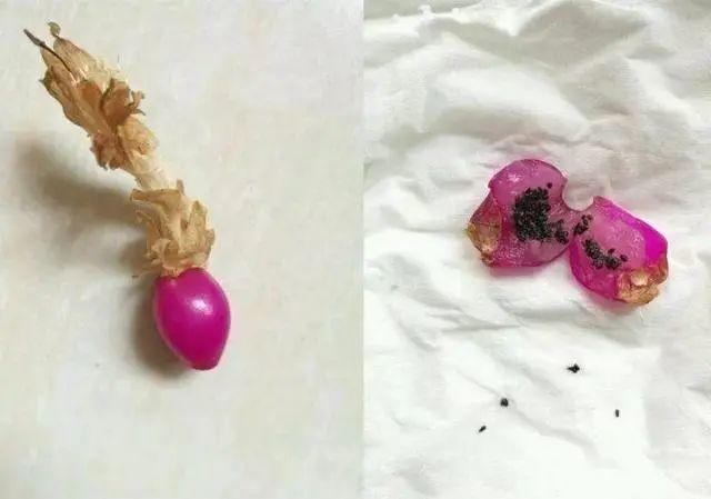 果子干燥之后,就可以摘下來,里面黑色的小籽就是蟹爪蘭種子,稍微晾干用衛(wèi)生紙或報紙、小塑料袋包著儲存。