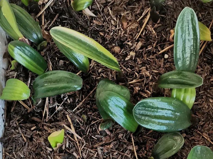 君子蘭生長比較慢,出葉子之后要增加光照,也可以撒緩釋肥補充營養(yǎng),小蘭要長1年左右才會比較。
