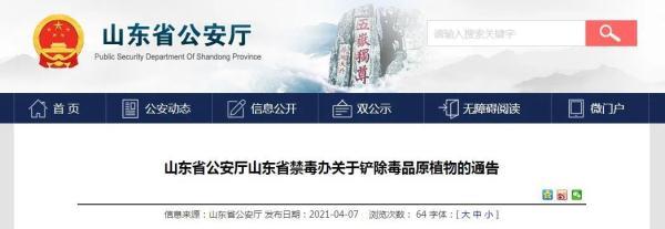 為進(jìn)一步加強(qiáng)我省禁種鏟毒工作,嚴(yán)厲打擊非法種植罌粟等毒品原植物違法犯罪行為,凈化社會(huì)環(huán)境,根據(jù)《中華人民共和國(guó)刑法》《中華人民共和國(guó)禁毒法》《中華人民共和國(guó)治安管理處罰法》以及《山東省禁毒條例》等有關(guān)規(guī)定,山東省公安廳山東省禁毒辦聯(lián)合下發(fā)《關(guān)于鏟除毒品原植物的通告》。