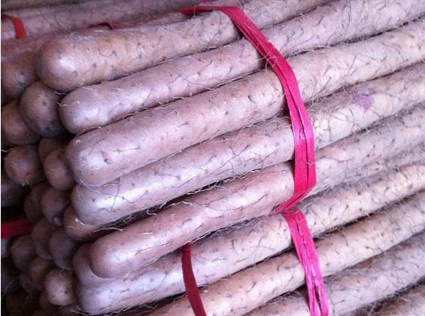 鐵棍山藥乃山藥中的,是河南焦作的特產(chǎn)之一,已有三千年種植歷史,曾為歷代皇室之貢品,屬于四大懷藥(懷山藥、懷地黃、懷牛膝、懷菊花)的懷山藥中的,在國內(nèi)外享有很高的知名度,現(xiàn)已被焦作市申請為原產(chǎn)地保護產(chǎn)品,原產(chǎn)地為焦作一帶為佳,此作物已經(jīng)流出,后被焦作重新發(fā)現(xiàn)流傳下來,周邊地市黃河沿岸也有種植,只有焦作(溫縣、孟州、武陟、沁陽、博愛等)種植的才能叫做“鐵棍山藥”。鐵棍山藥富含豐富的蛋白質(zhì),維生素和多種氨基酸與礦物質(zhì),既能補脾肺腎之氣,又能滋養(yǎng)脾肺腎之陰,為氣陰雙補之珍品。然而普通山藥,沒有鐵棍山藥營養(yǎng)價值和藥用價值高,只是單純的做菜用。