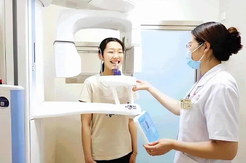 檢查用的機器長這樣,你把下巴抵住托槽,上下牙咬住即可,這個圖片是網(wǎng)絡找的,一看就是擺拍,因為沒有穿防護用的鉛衣。