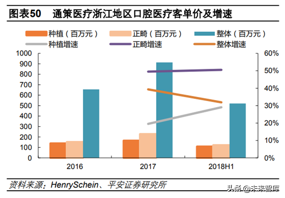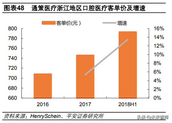 客單價(jià)提升主要由于正畸和種植業(yè)務(wù)快速增長。2018H1公司正畸和種植業(yè)務(wù)收入分別為1.22億元和1.09億元,分別同比增長50.52%和29.05%,正畸增速遠(yuǎn)高于整體水平,種植增速相比2017年提升,基本與整體持平。看好公司持續(xù)受益口腔消費(fèi)升級。