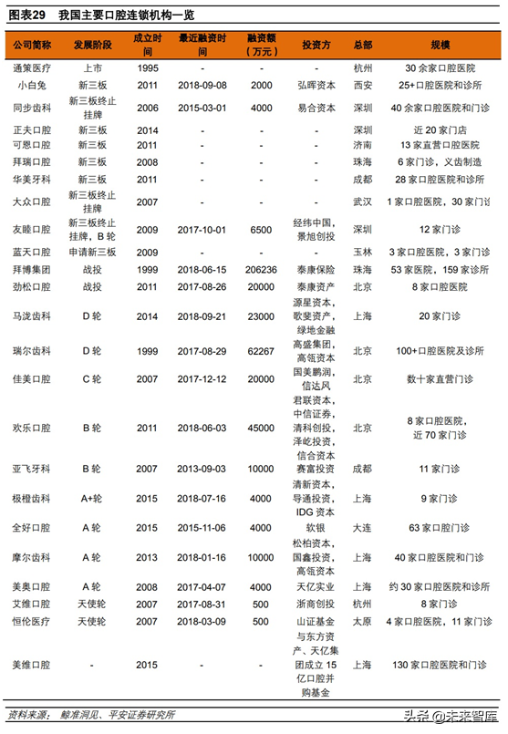 目前我國尚未有專業(yè)的DSO企業(yè),但我們認(rèn)為隨著國內(nèi)口腔醫(yī)療快速發(fā)展,以及診所專業(yè)化程度提升,未來DSO企業(yè)有其生存土壤,建議關(guān)注。