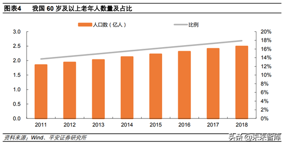 牙科患病率隨年齡增長而提升,老齡化影響顯著。齲病和牙周疾病是我國常見的兩種口腔疾病,從齲患率就可以看出,隨著年齡的增長,相關(guān)口腔疾病的患病率呈上升趨勢。2017年我國60歲及以上老年人口數(shù)量達(dá)到2.49億人,占總?cè)丝诒壤_(dá)到17.9%,遠(yuǎn)超過10%的老齡化社會(huì)標(biāo)準(zhǔn)。據(jù)多部門預(yù)測,2030年我國60歲及以上老年人口占比將超過25%,將帶來大量口腔醫(yī)療需求。
