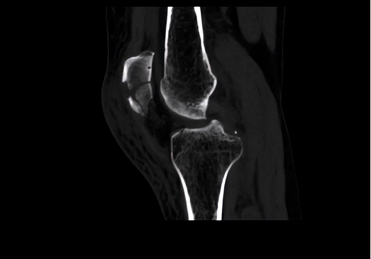 本例患者就是由于意外不慎摔倒,左膝部著地,當(dāng)即便感左膝部疼痛伴活動(dòng)受限,不能夠獨(dú)自站立行走。這就是由于直接外力導(dǎo)致髕骨受撞擊,從而引起的髕骨骨折。