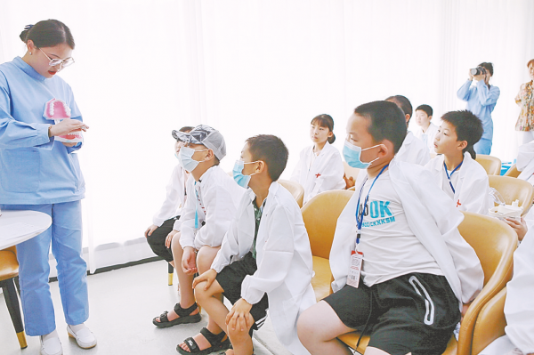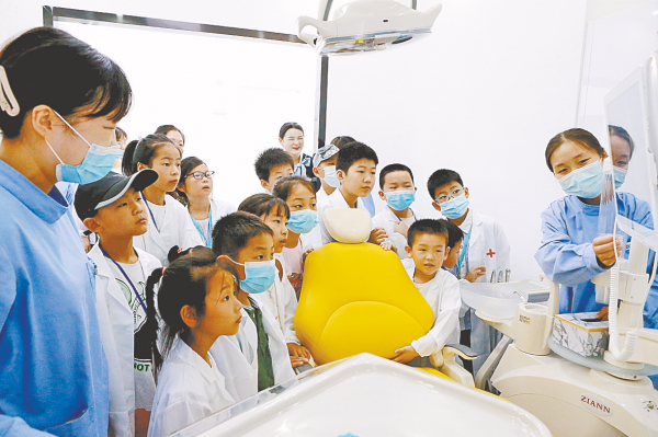 來(lái)自新蔡縣月亮灣小學(xué)的小記者們穿上白大褂,和家長(zhǎng)一起走進(jìn)新蔡口腔醫(yī)院,在醫(yī)護(hù)人員的帶領(lǐng)下走進(jìn)診區(qū)參觀,認(rèn)識(shí)牙科器材,了解診療流程。
