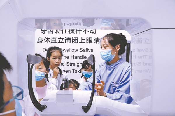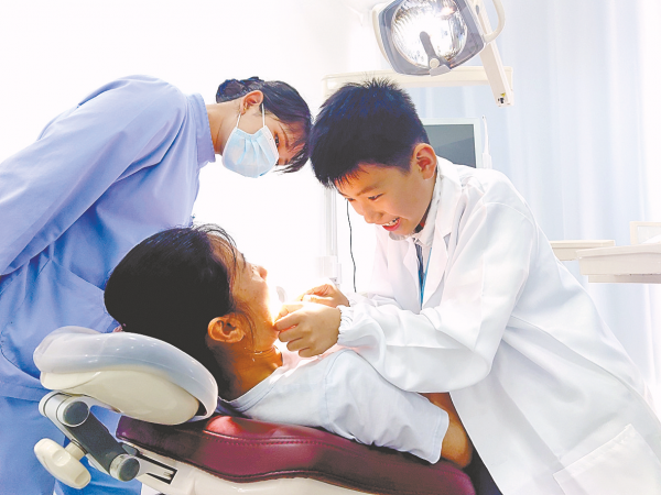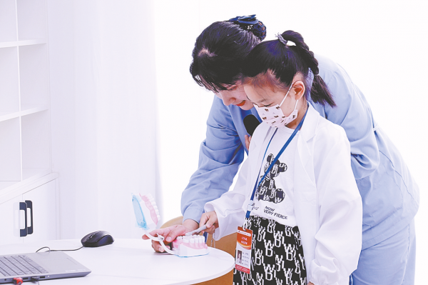 到了大顯身手的時(shí)刻,小記者們化身小牙醫(yī),走進(jìn)診室體驗(yàn),和家長(zhǎng)互換角色,進(jìn)行牙齒健康檢查。