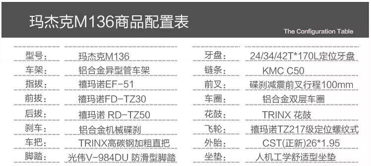 千里達(dá)瑪杰克M136售價(jià)938元,變速系統(tǒng)使用的是Shimano通勤級(jí)別的混搭套件,其他配件使用的多是千里達(dá)自家產(chǎn)品,符合這個(gè)價(jià)位的水平。但是這比某寶上那些不知名的爆款山地車(chē)要有保障,大品牌在各方面都是無(wú)名小廠不能比的。